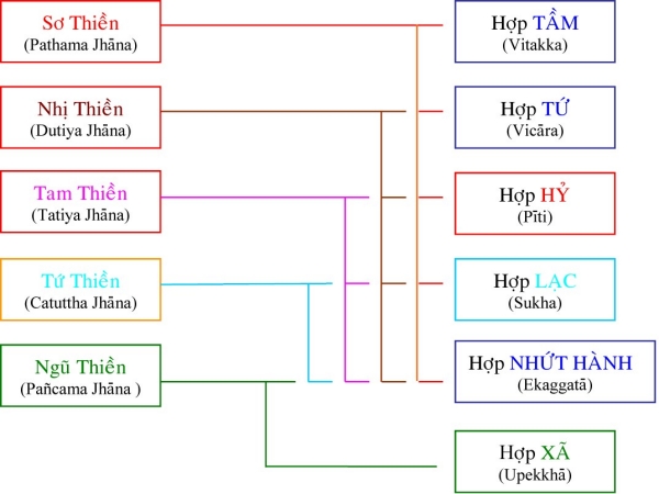 BÀI 8. TÂM SẮC GIỚI Là những tâm thuộc về lảnh vực sắc (sắc tế và không nghiêng nặng về lảnh vực cảnh như tâm dục giới). Theo sớ giải, sở dĩ chúng được gọi là tâm sắc giới vì 3 ý nghĩa sau: Gọi là tâm sắc giới vì tâm này lấy sắc pháp làm đề mục để tu thiền quán (Kammatthāna = tu thiền sắc giới). Gọi là tâm sắc giới vì những tâm thiện tu thiền sẽ có kết quả sanh về cõi sắc giới làm người sắc giới. Gọi là tâm sắc giới vì quả thành tựu của thiền sắc giới là cõi sắc giới. Sắc pháp ở đây là sắc tế chớ không phải thô thiển như ở cõi dục giới. I. Tâm Thiền Thiện Sắc Giới (Kusalarūpavacaracitta):Là tâm lành, lấy sắc pháp làm đề mục để tu thiền định. Có tác năng tạo quả tục sinh trong cõi sắc giới. 1.1) Pháp Tu Thiền Chỉ (Sammādhi Bhāvanā): Thiền (Jhāna) thường được gọi là Thiền Ðịnh, là trạng thái tâm chuyên chú vào một đối tượng hay còn gọi là đề mục (Ðịnh=Ekaggatā). Sự định tâm, chuyên chú này có tác dụng thiêu đốt các nghịch pháp phiền não (Tapo). Ta có thể nói Thiền hay thiêu đốt pháp nghịch là cái dụng của Ðịnh và Ðịnh hay sự chú tâm là cái theå của Thiền. Ðồng sanh với tâm thiền có nhiều tâm sở (Cetasika) nhưng có 5 tâm sở được xem là quan trọng nhất vì chúng có khả năng đối trị, thiêu đốt các nghịch pháp. Năm chi pháp ấy là: Tầm (Vitakka): là sự hướng tâm đến cảnh; đưa đến và quy tụ trên đối tượng. Có tác dụng diệt trừ hôn trầm (Thīna) và thụy miên (Middha) là trạng thái buồn ngủ, dã dượi của tâm. Tứ (Vicāra): là sự quan sát, dán áp tâm lên đối tượng. Tâm này diệt trừ và đè nén được hoài nghi (Vicikicchā) là một trạng thái lưởng lự phân vân. Hỷ (Pīti): còn gọi là phỉ lạc là trạng thái no vui với đối tượng, hoan hỷ, sung sướng, giống như sự vui mừng của một người đang khát mà gặp được nước. Do sự no vui này, nó có thể đoạn diệt, chế ngự được sự sân ưu (Vyāpāda) là một trạng thái buồn bực khó chịu. Lạc (Sukha): là trạng thái sung sướng do hưởng cảnh, như một người khát khi uống được hớp nước đầu tiên. Tâm này trừ diệt trạng thái phóng dật (Uddhacca) một trạng thái tán loạn, lao chao. Ðịnh (Ekaggatā): Còn gọi là Nhất Hành. Là trạng thái chú tâm vào đối tượng. Tâm này áp đão được sự tham dục (Kāmacchanda) một trạng thái ái nhiểm, vọng mống. 1.2) Ðề mục thiền chỉ (Kammatthāna): có tất cả 40 đề mục gồm cả thiền sắc giới và thiền vô sắc giới. Riêng về sắc giới có tất cả 36 đề mục. 10 Ðề mục Hoàn Tịnh (Kasiṇa): Ðất (Patthavī) – Nước (Āpo) – Lửa (Tejo) – Gió (Vāyo) – Màu Xanh (Nīla) – Màu Ðỏ (Lohita) – Màu Vàng (Pīla) – Màu trắng (Odāta) – Hư Không (Ākāsa) – Ánh Sáng (Arābha). 10 Ðề mục Bất Tịnh (Asubha): Tử thi sình (Uddhumutaka) – Tử thi đổi màu sắc (Vinilaka) – Tử thi rả ra chảy nước mủ (Vipubbaka) – Tử thi bị đứt đoạn (Vicchiddika) – Tử thi bị đục khoét (Vikkhayitaka) – Tử thi văng rời ra từng mảnh nhỏ (Vikkhiṭṭaka) – Tử thi bị rả ra từng miếng (Hatavikkhitakaṃ) – Tử thi đẩm máu (Lohitaka) – Tử thi bị vòi đụt khoét (Pulavaka) – Tử thi chỉ còn bộ xương (Aṭṭhikaṃ Hài cốt). 10 Ðề mục tùy niệm (Anussati): Niệm Phật (Buddhānussati) – Niệm Pháp (Dhammānussati) – Niệm Tăng (Sanhānussati) – Niệm Thí (Cāgānussati) – Niệm Giới (Sīlānussati) – Niệm Sự Chết (Maranānussati) – Niệm Hơi Thở (Ānāpānasati) – Niệm Chư Thiên (Devānussati) – Niệm Niết Bàn (Nibbānānussati hay Upasamāsati) – Niệm Thân (Kāyānussati). 4 Ðề mục Tứ Vô Lượng Tâm (Brahmāvihāra): Từ (Mettā) – Bi (Karunā) – Hỷ (Muditā) – Xã (Upekkhā). 1 Ðề mục Tưởng (Sāññā): Tưởng về sự ô trược của vật thực (Āhāro patikkulasāññā). 1 Ðề mục Phân Biệt (Vatthāna): Phân biệt về thể tánh của Tứ Ðại (Catudhātuva vatthāna). 1.3) Phương thức hành thiền (Bhāvanā): Trong quá trình hành thiền chỉ, ta có thể phân làm hai giai đoạn: (i) Giai đoạn luyện tập: a) Ðối với những đề mục hoàn tịnh: Là đề mục hành thiền bằng sắc pháp, hành giả trụ tâm trên những đề mục ấy cho đến khi đề mục chỉ còn là một ấn tượng của tư tưởng mà thôi. Với 10 đề mục Kasina hành giả có thể đắc từ sơ thiền đến ngũ thiền. Hành giả dùng đất tạo thành 1 hình tròn đường kính khoảng một gang tay (vật ấy gọi là sơ tướng – Parikamma Nimitta), để cách xa độ một thước rồi nhìn chăm chú vào đó mà niệm cho đến khi nhắm mắt mà vẫn có thể thấy hình tròn đó hiện ra (hình tròn đó được gọi là thô tướng – Ugogaha Nimitta), hình này còn thô sơ và còn những dấu vết dọc ngang của đối tượng trét đất trước. Hành giả tiếp tục nhắm mắt và chuyên chú định tâm quán sát thô tướng này cho đến khi nó trở thành một vòng tròn sáng không một tì vết nào cả (vòng tròn sáng này được gọi là quang tướng – Pātibhāga Nimitta), quang tướng này không có thực mà chỉ hình thành do sự tưởng tượng c